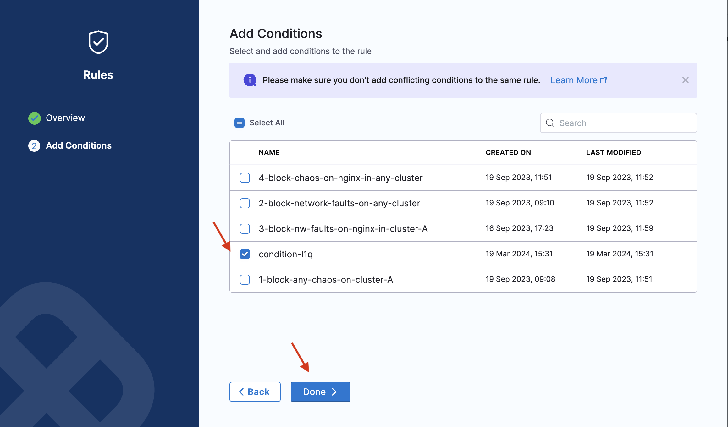 4. Select a condition (or multiple conditions) that you wish to apply. Click Done.