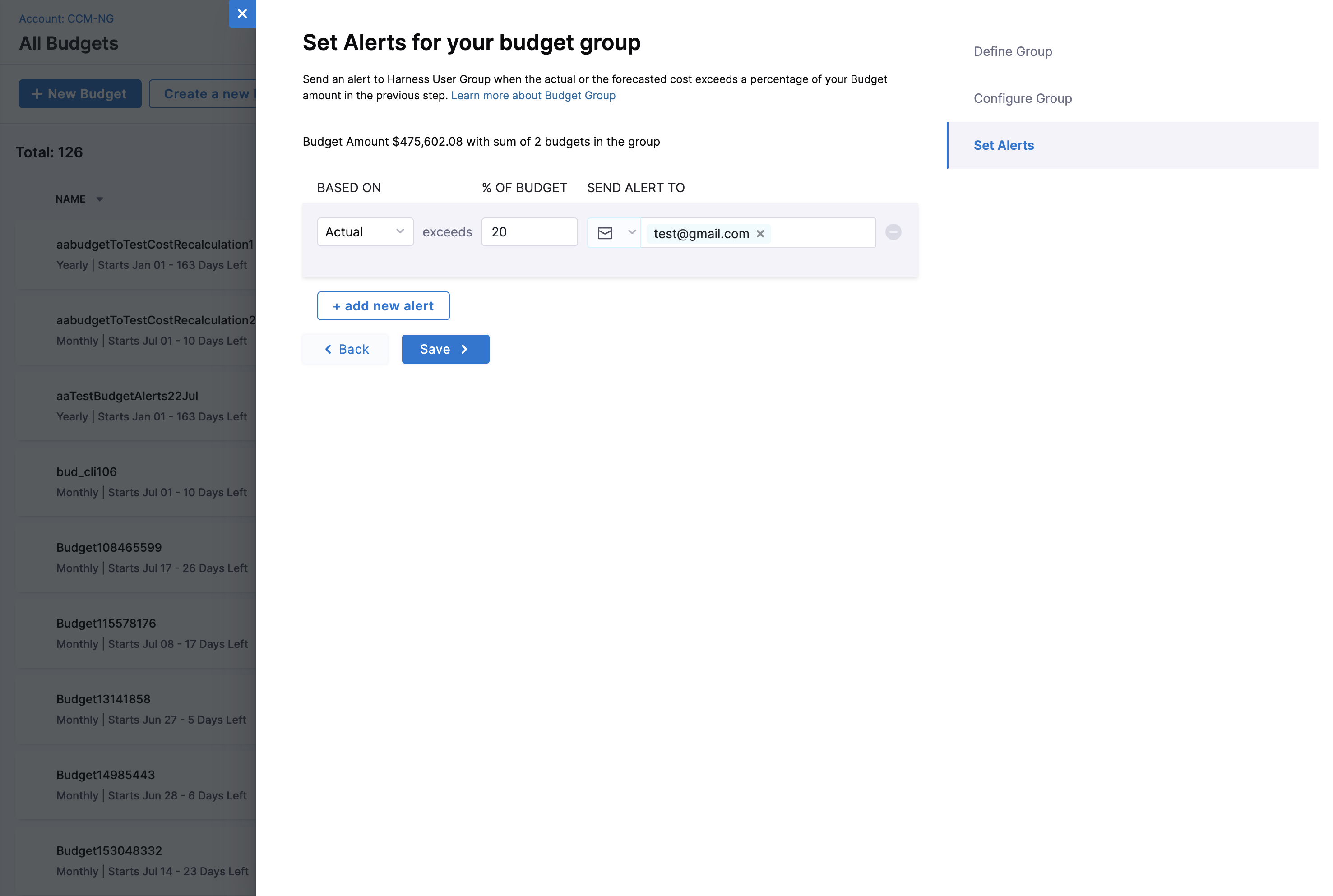- Set Alerts for your budget group: You can set alerts for your budget group to receive notifications when the actual or forecasted cost exceeds a specified percentage of the budget.