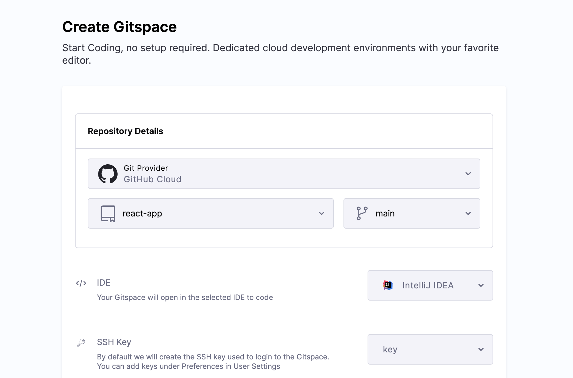 6. SSH Key: Required for all IDEs except browser-based ones. Refer to the SSH key setup guide.