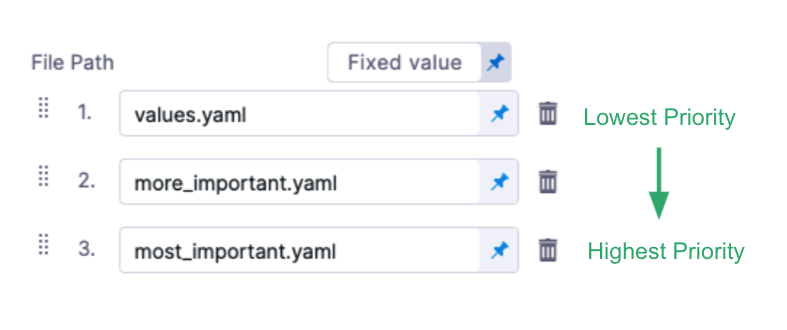 • Values YAML files can use a mix of hardcoded values and Harness expressions.