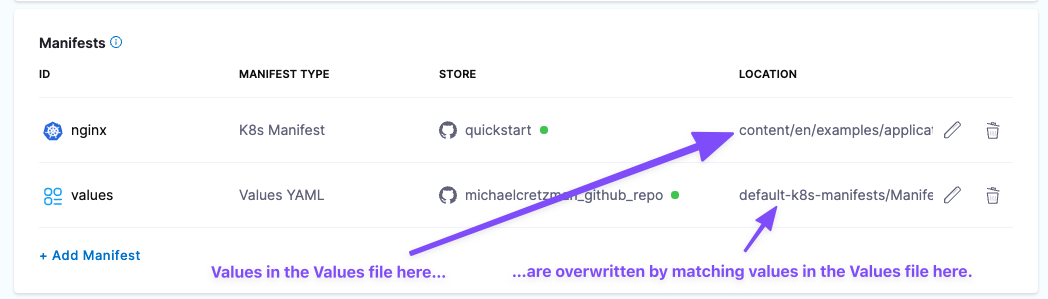 Manifest Optional Values file