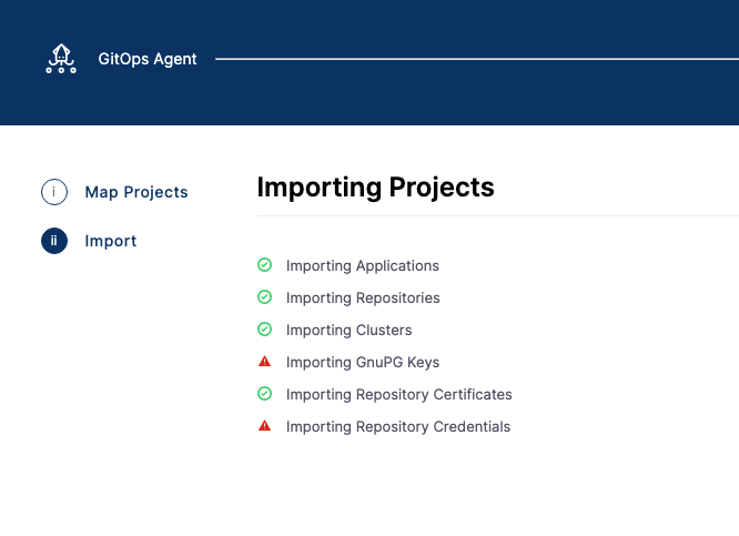 Here's an example where the Argo CD applications, repositories, repository certs, and clusters are imported.