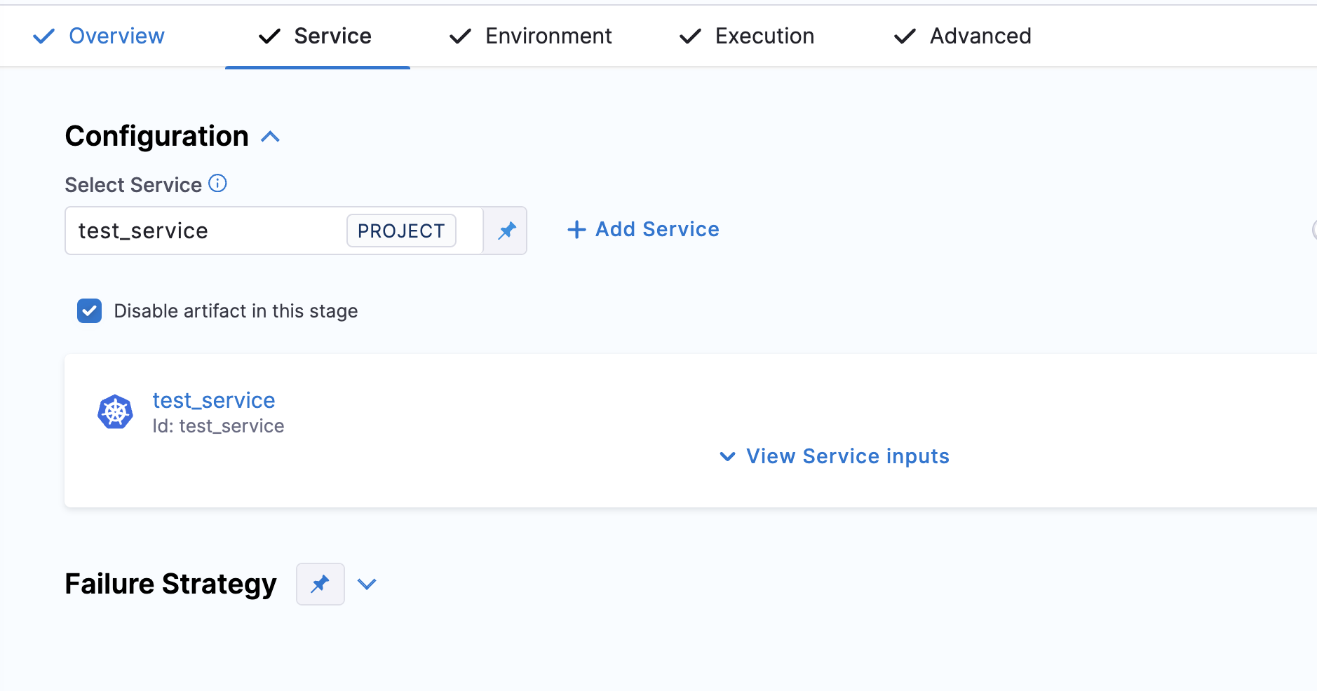 If you enable Disable artifact in this stage for a particular service in one stage and propagate that service to another stage, artifact consumption check will also be skipped in the propagated stage.