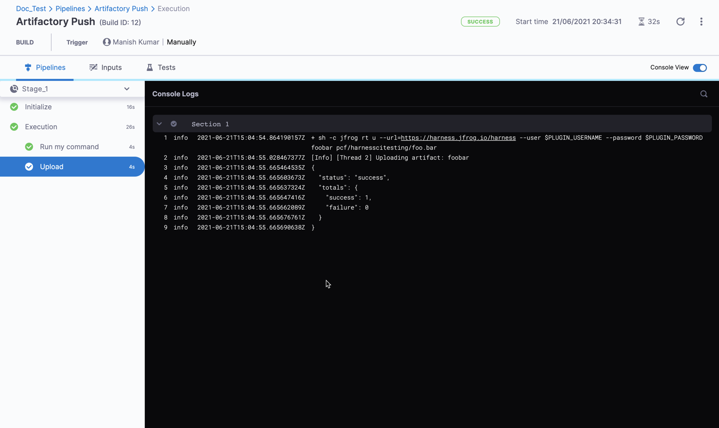 Use the Upload Artifacts to JFrog Artifactory step in your CI pipelines to upload artifacts to JFrog Artifactory non-Docker registries. To learn how to push Docker images to JFrog Docker registry, see Build and Push to JFrog Docker registries.