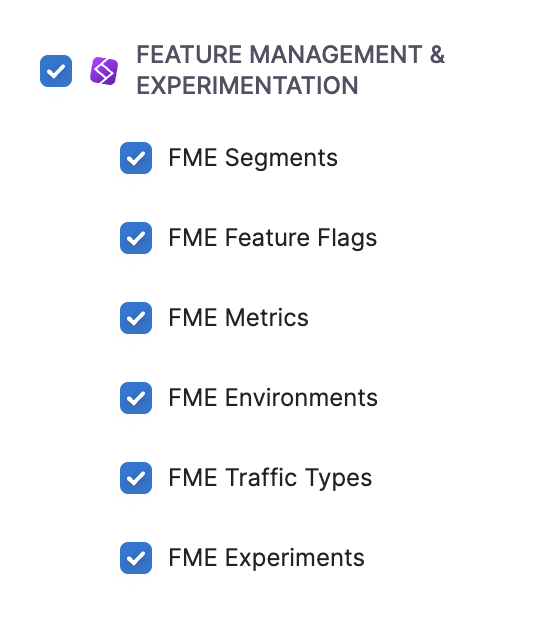 RBAC policies assigned to FME resources do not inherit across organizations or accounts. Before configuring RBAC resource groups and roles, ensure FME is enabled on your account. For more information about Harness RBAC, see the Harness Platform documentation.