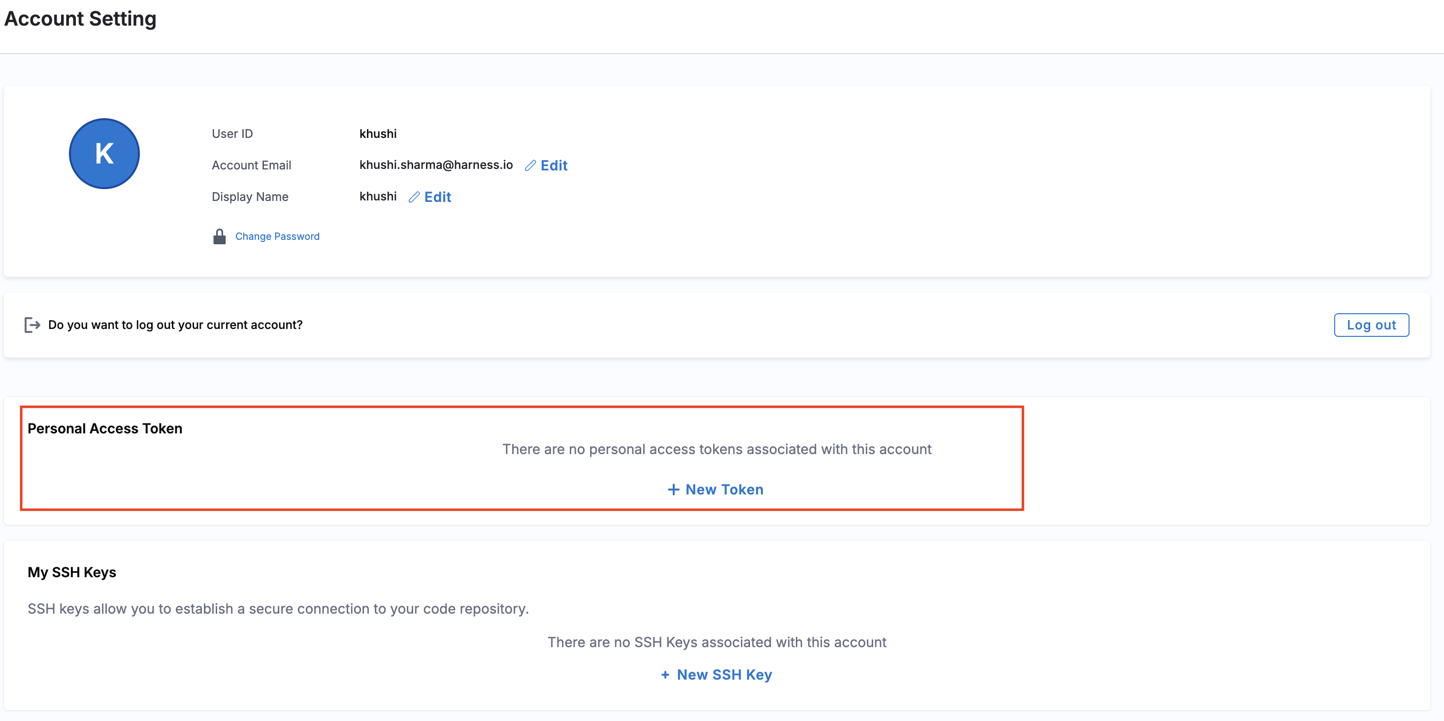 3. To create a token, go to the Harness Open Source UI and open your profile section.