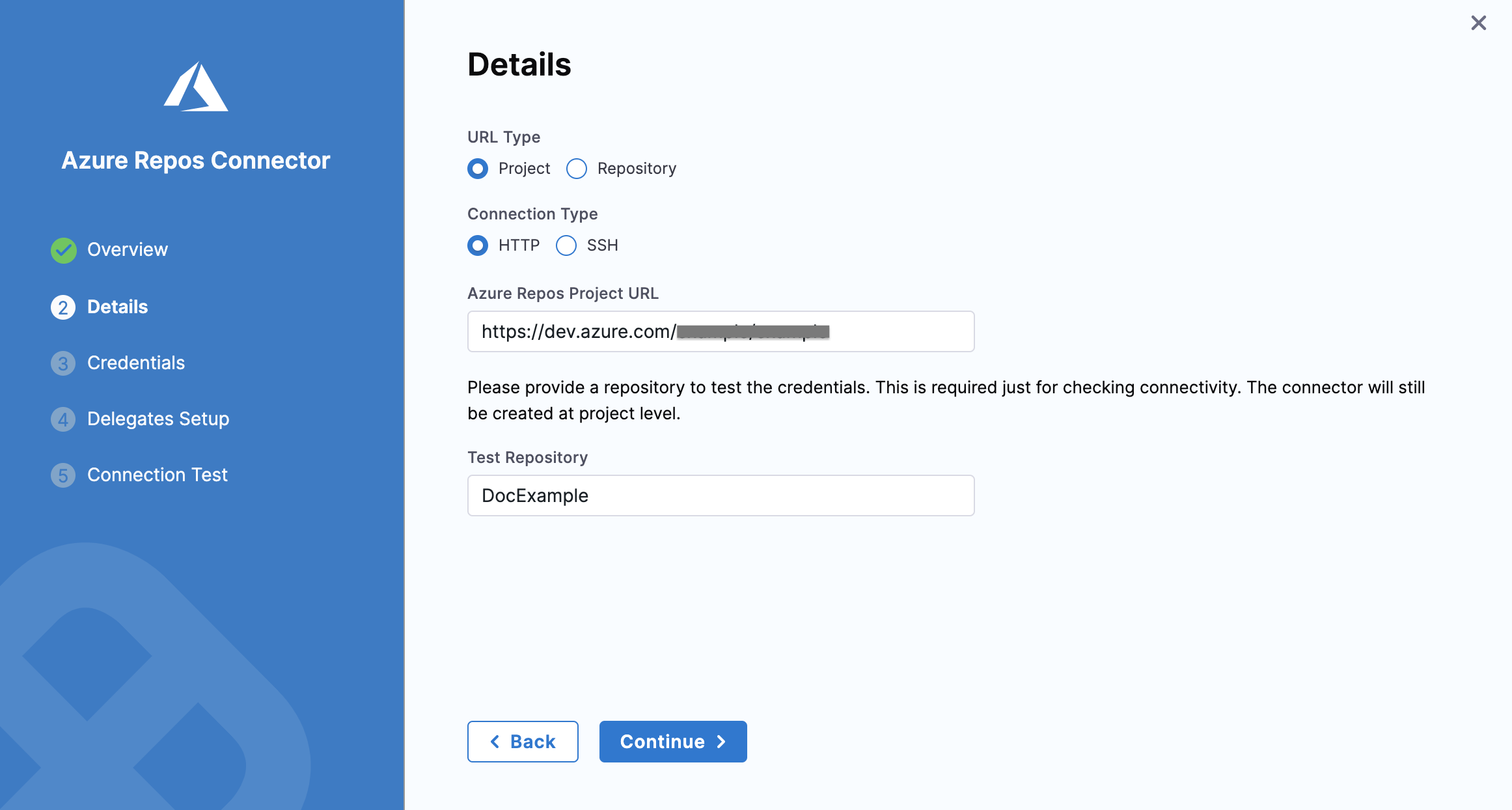 6. Enter your Azure Repos Project or Repository URL.
