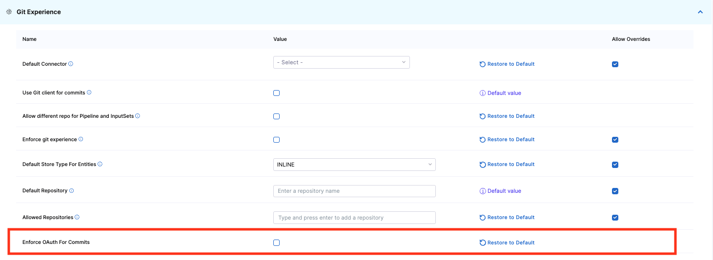 You can enforce OAuth for commits pushed from Harness to your Git provider.