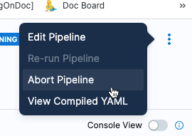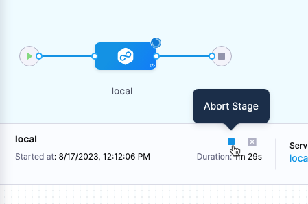 This topic explains how to stop an in-progress pipeline, stage, or step. Take care when using this option as it can have additional impacts.