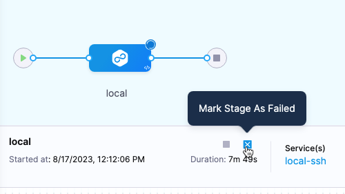To clean up the workspace and revert back to the old state, mark the stage as failed.