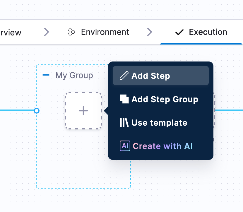 Navigate to a Harness project and create a new pipeline. Create a stage of custom type and select the execution tab.