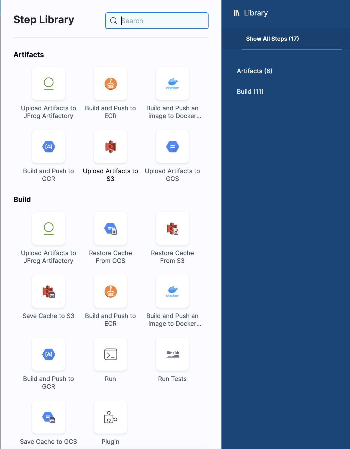 2. In Step Library, select Run under Build.