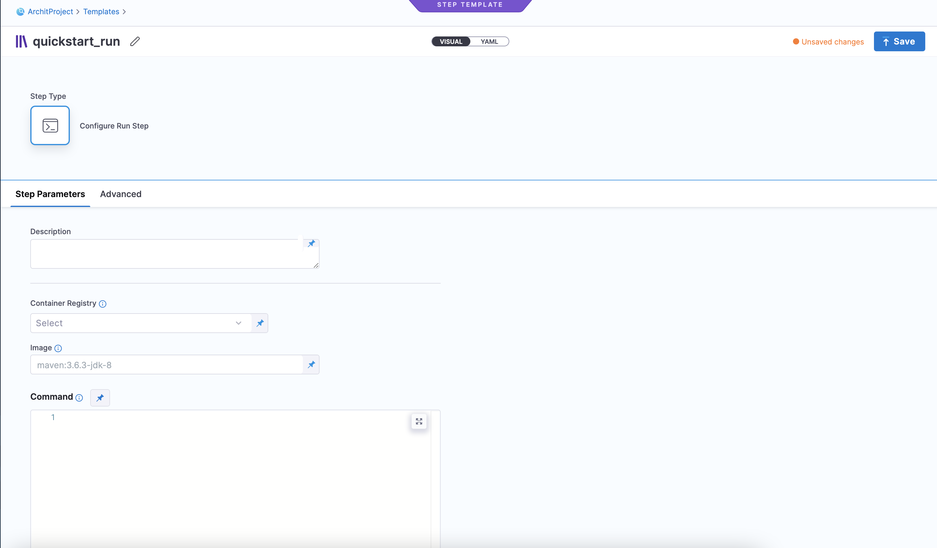 • Create a Run step template.