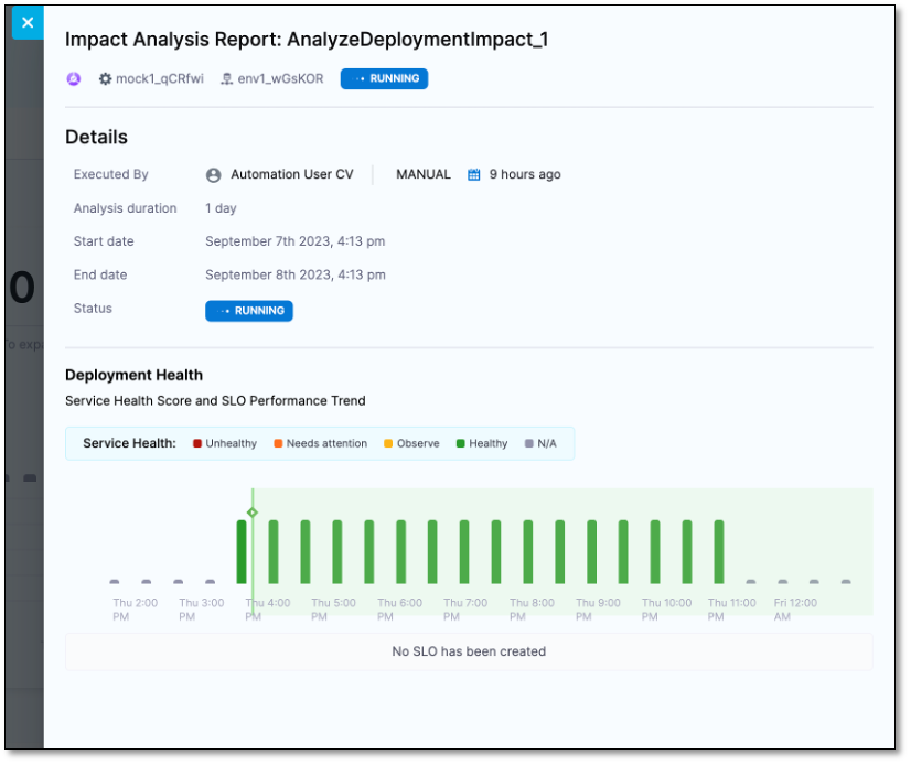 When you run the deployment pipeline, Harness runs the Analyze Deployment Impact step and generates results.
