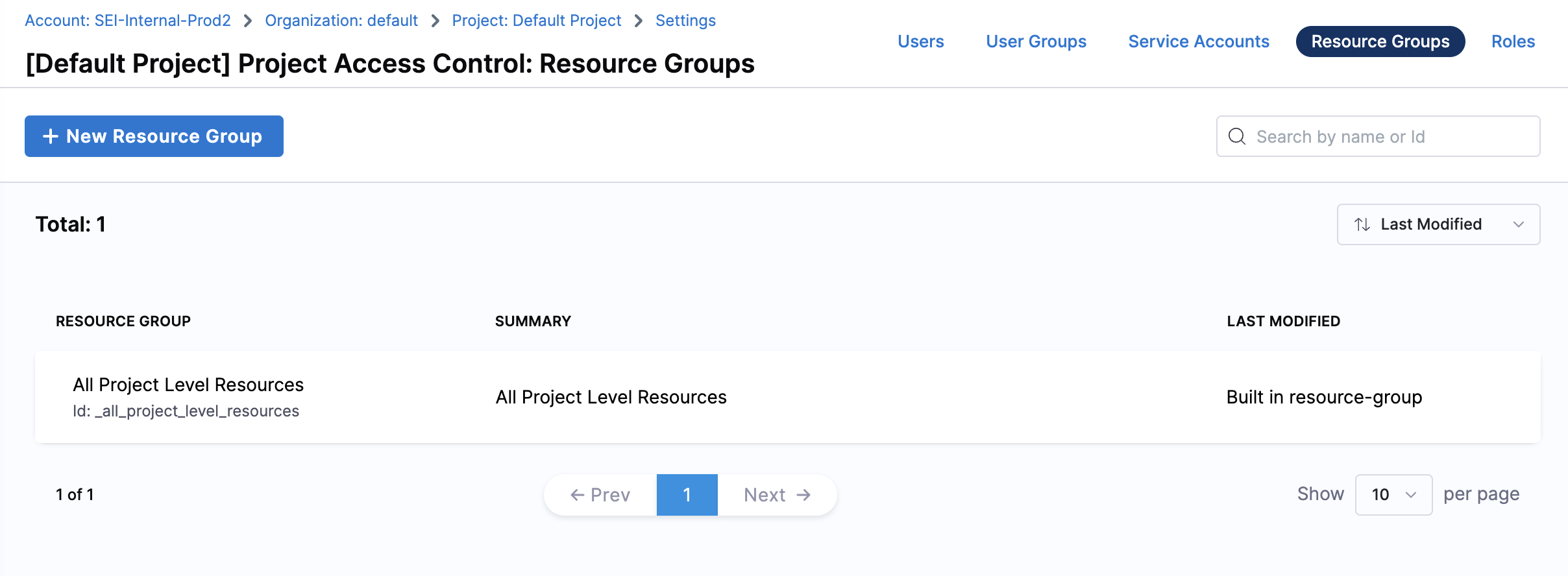 At the project level, there is one built-in resource group available: