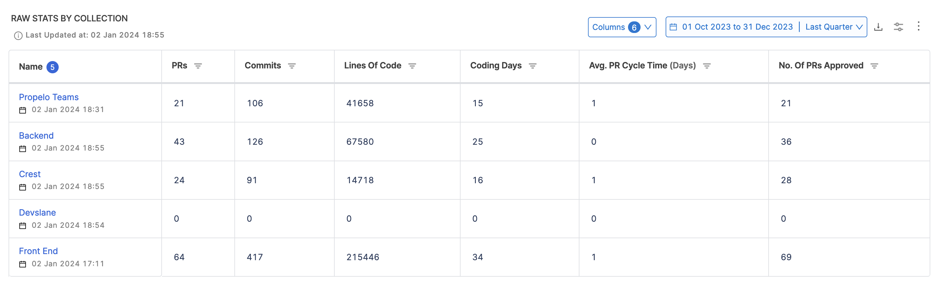 • Speed: Speed measures the pace at which developers are writing and submitting code.