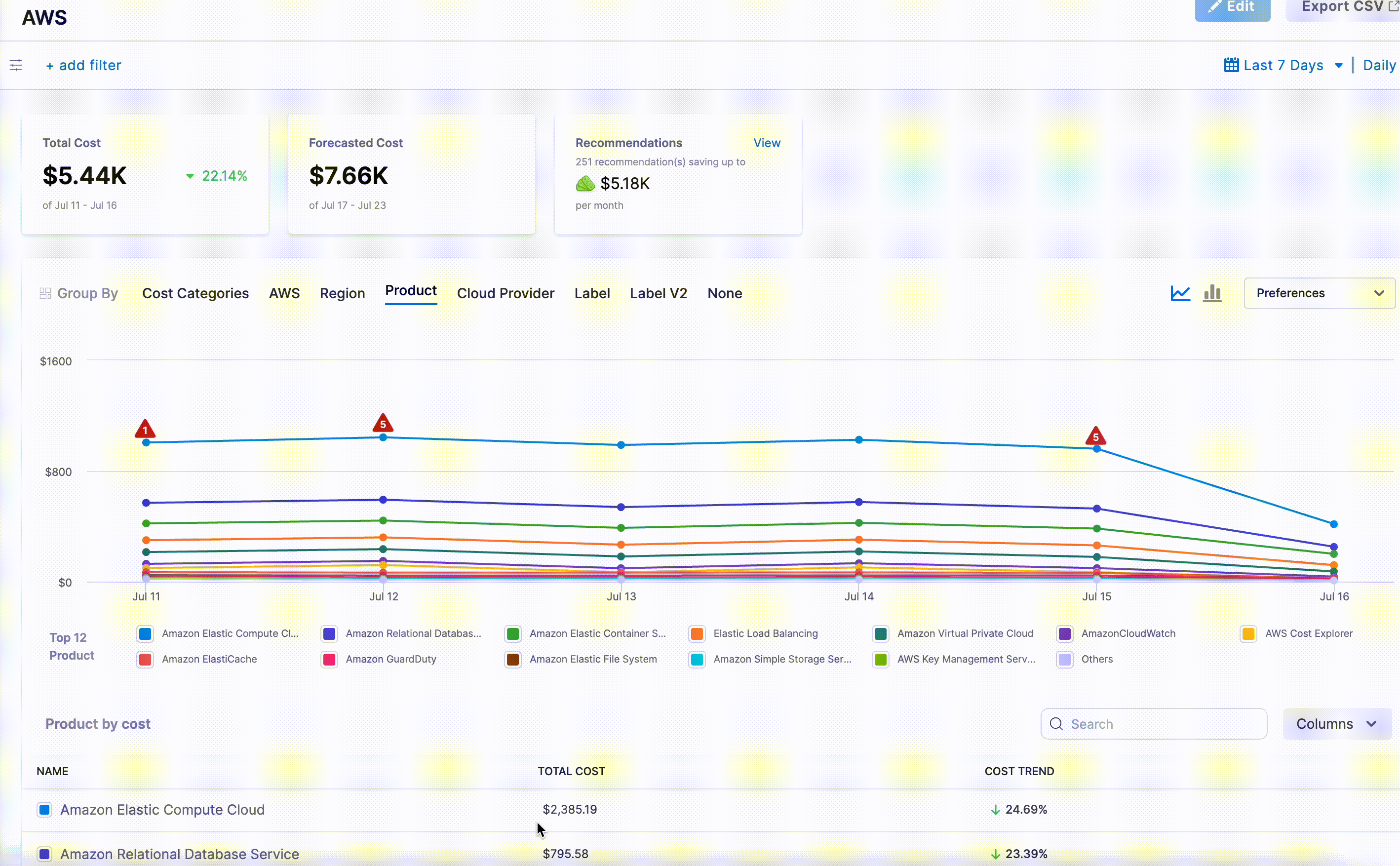 - Anomalies Table Sorting: The default view of the anomalies table now sorts by "Cost Impact" in descending order. [CCM-26665]